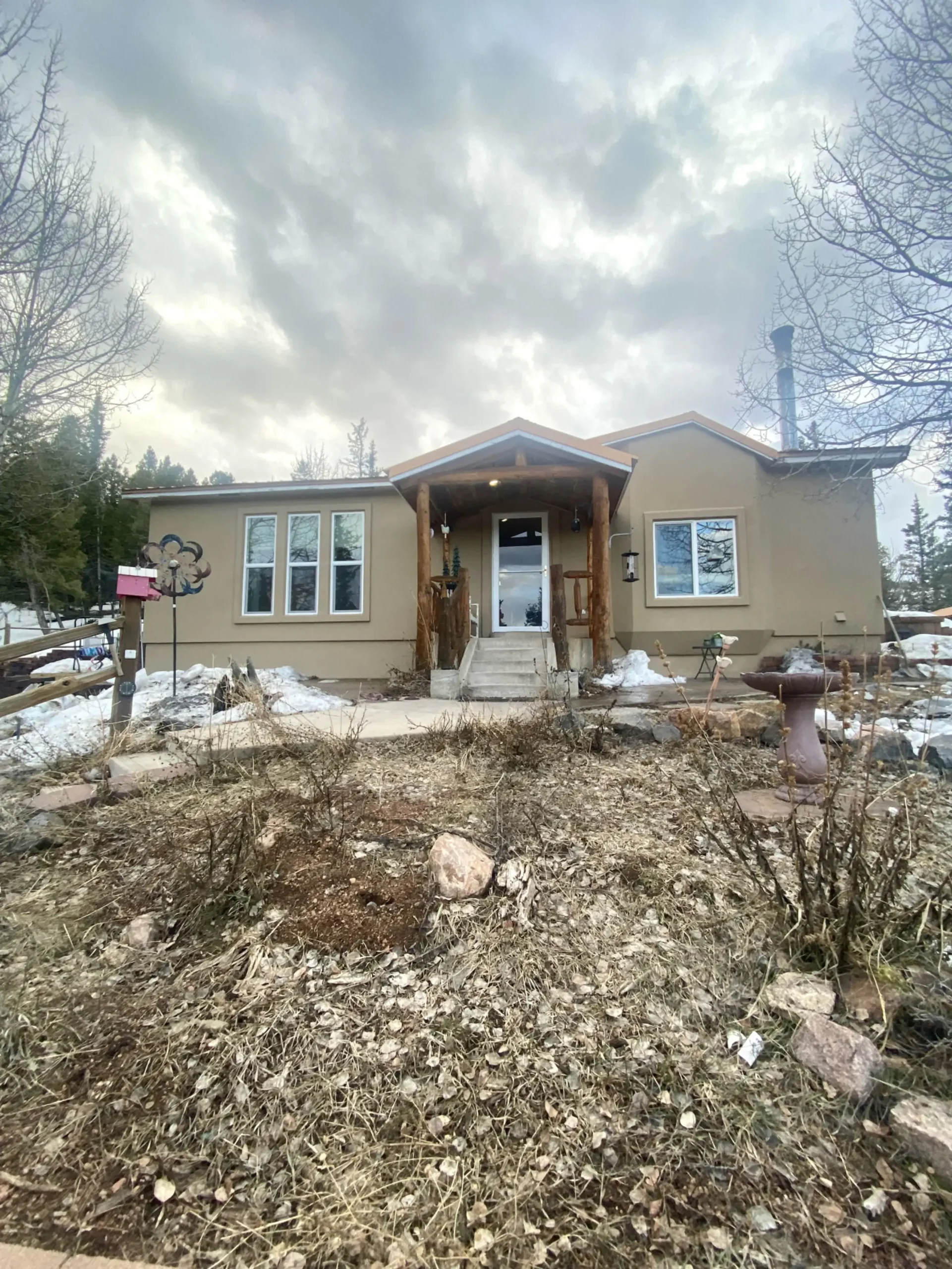 Enjoy the outdoors in the Rocky Mountains. This home is cozy and allows for up to 6 people. It includes 2 bedrooms and one bathroom. The first bedroom has a king bed, the 2nd bedroom has a full bed, the sofa bed is queen size. Accommodations for laundry, stocked kitchen, hot tub, privacy from neighbors on this 4 acre property. There are several lakes in the area with beautiful views of Pikes Peak. Pet friendly.